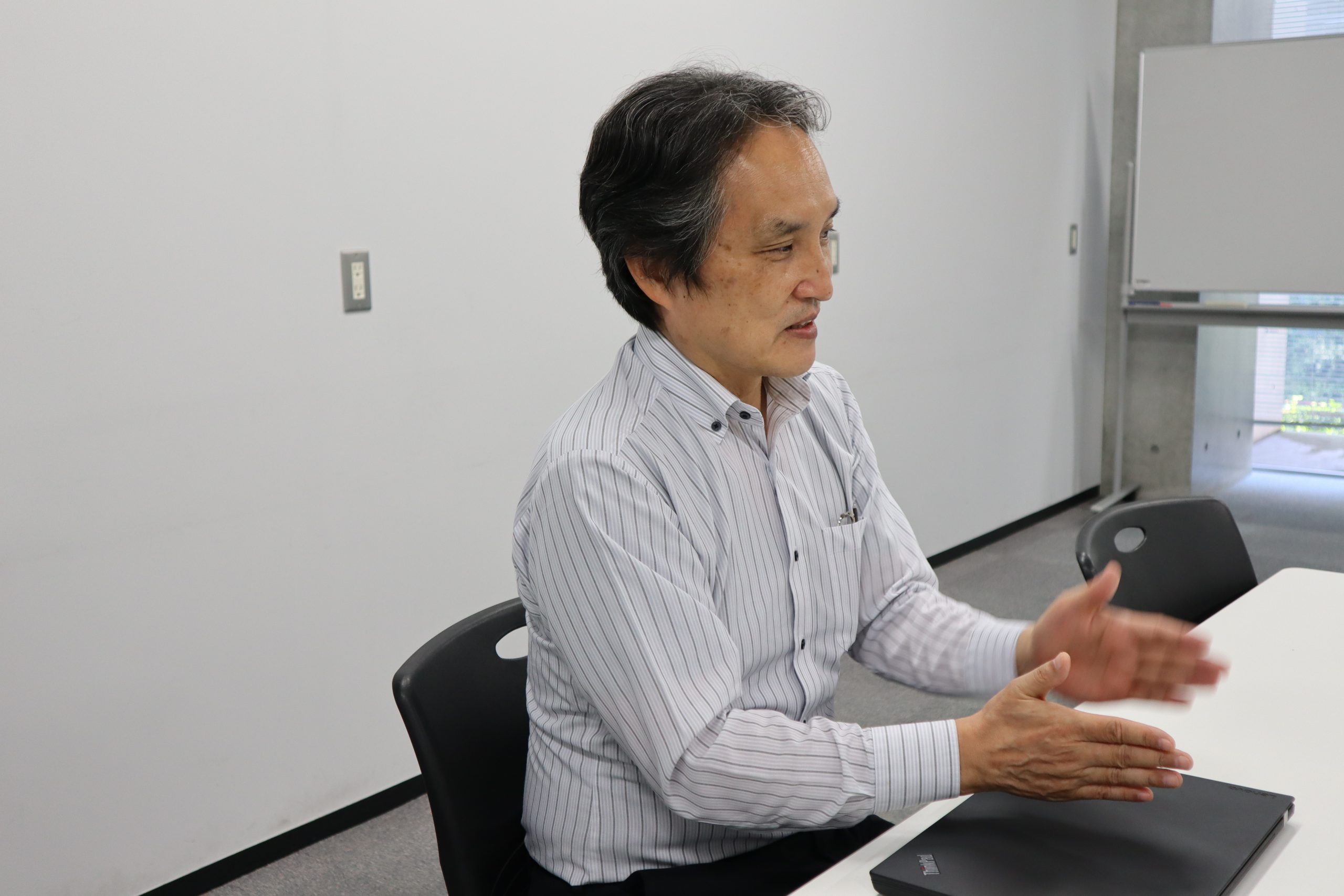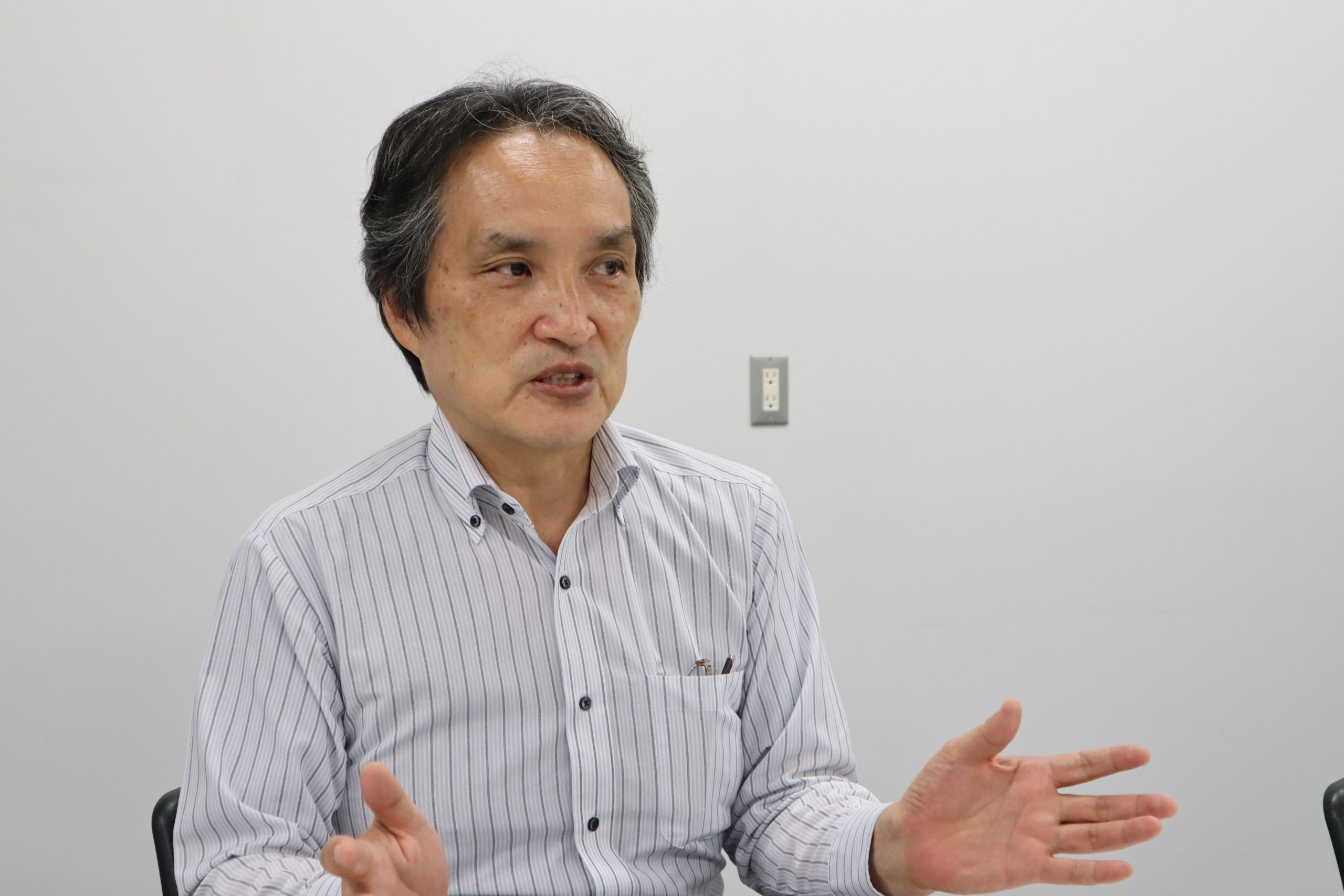 インタビューを受ける半澤さん