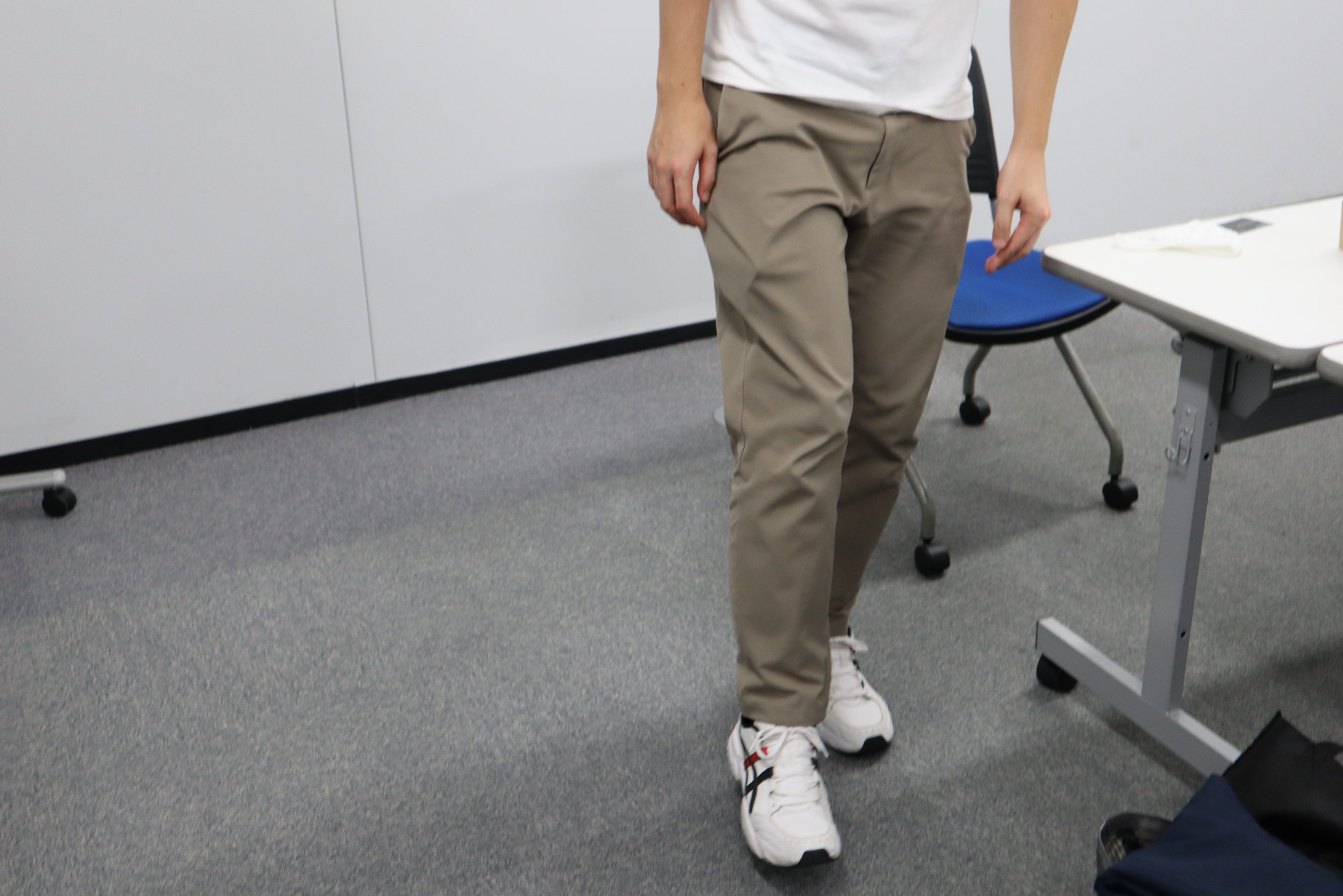 歩くとして、まず右足を前に出しますね。そして踵から地面に着き、左足を前に振り出したときに右足のアキレス腱がグーッと伸びる。そして右足が床を離れるときには、つま先を押し出して地面を蹴ります。このとき右足が勢いよく前に送り出されますが、右足の下腿が前に行きすぎないように途中でブレーキをかける必要があります。このとき、膝の周りの筋肉はブレーキをかけるように働きます。